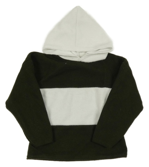 Tmavokhaki-bílá pletená mikina s kapucí
