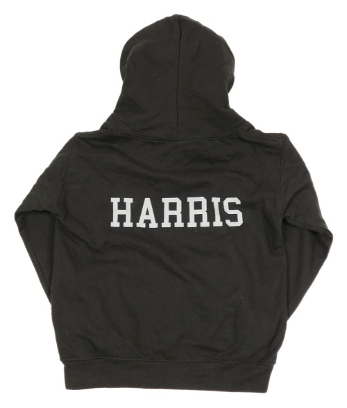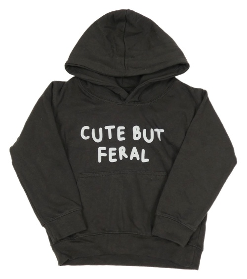 Tmavošedá mikina s nápisem a kapucí