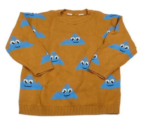 Hnědo-modrý svetr s horami