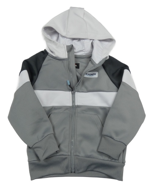 Šedo-bílo-tmavošedá propínací sportovní 42mikina s logem a kapucí MCKENZIE