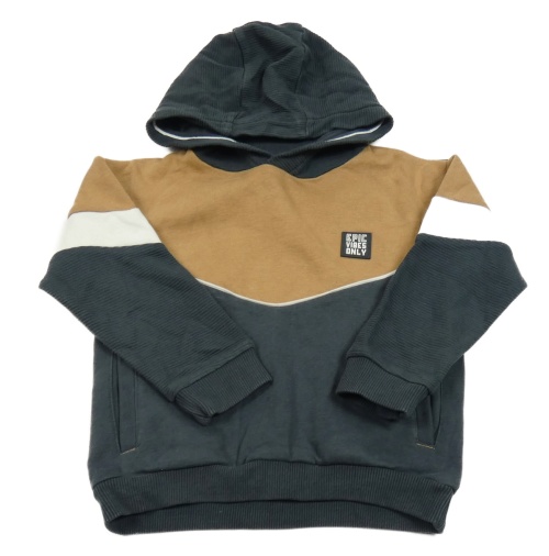 Antracitovo-hnědo-bílá mikina s nášivkou a kapucí Nutmeg
