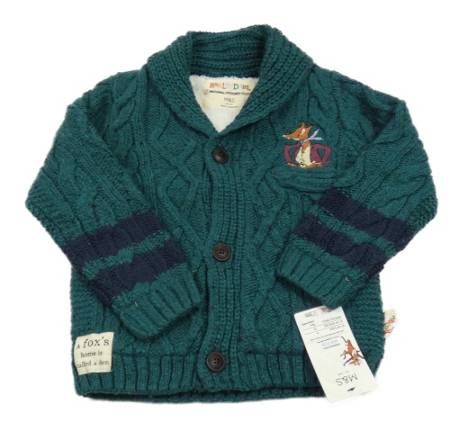 Nové - smaragdový melírovaný vzorovaný vlněný propínací zateplený svetr s lišákem - Fantastický pan Lišák M&S