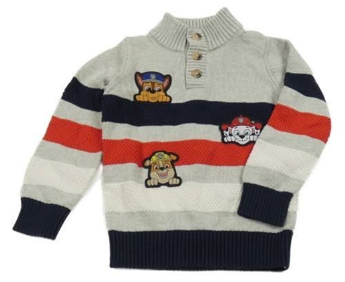 Šedo-tmavomodro-červený pruhovaný svetr - Tlapková Patrola C&A