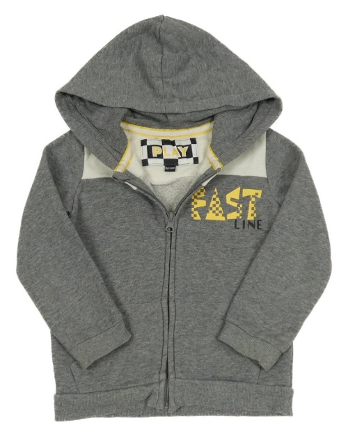Šedo-bílá propínací mikina s nápisem a kapucí