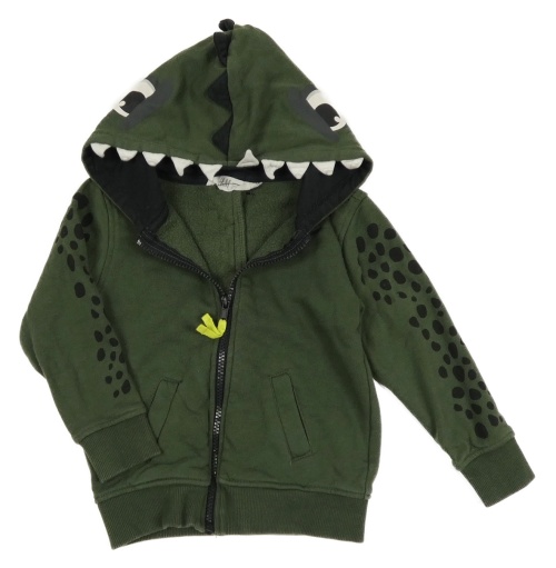 Tmavozelená propínací mikina s ostny a kapucí - dino H&M