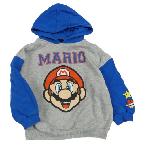 Šedo-cobaltově modrá melírovaná oversize mikina s Máriem a kapucí George