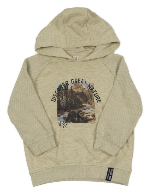 Světlešedo-smetanová melírovaná mikina s medvídkem a nápisem a kapucí Topolino