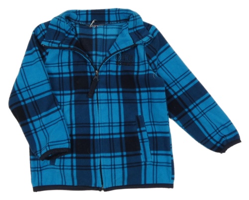 Modrozeleno-černá kostkovaná fleecová propínací mikina s nápisem Topolino