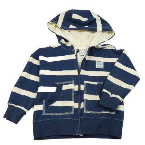Tmavomodro-smetanová propínací mikina s nášivkou a kapucí Sinsay