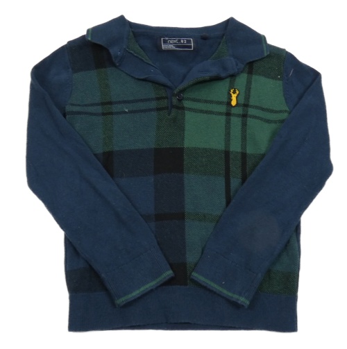 Tmavomodro-zelený kostkovaný lehký svetr s límečkem Next