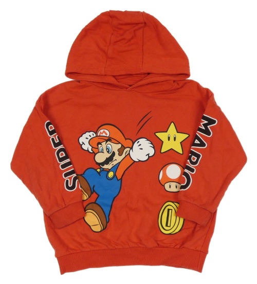 Červená mikina s Mariem a kapucí