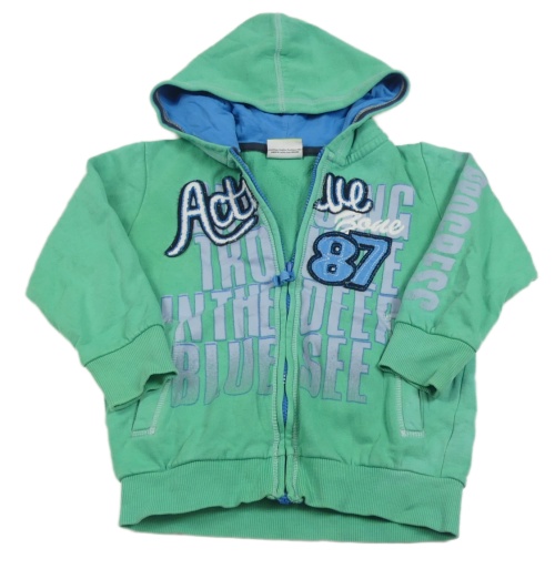 Zelená propínací mikina s nápisy a kapucí Topolino