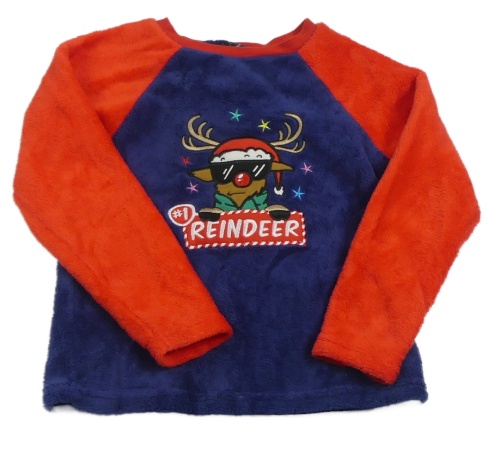 Červeno-tmavomodrá chlupatá pyžamová mikina se sobem Primark