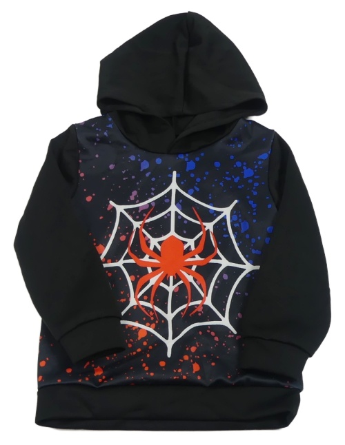 Černá mikina s pavoukem a kapucí