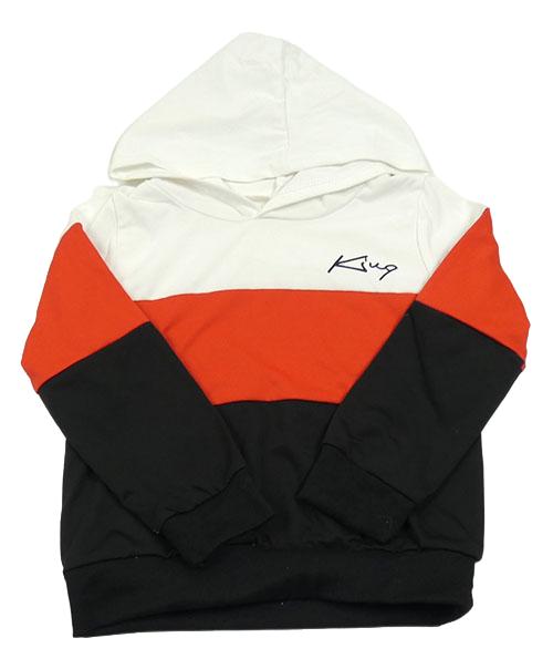 Bílo-červeno-černá mikina s nápisem a kapucí
