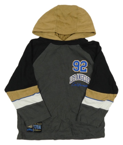 Tmavošedo-černo-hnědá vzorovaná mikina s číslem a nápisem a kapucí Next