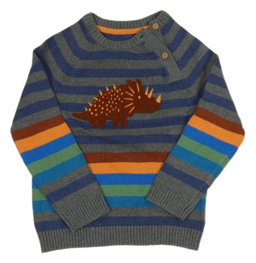 Šedo-barevný pruhovaný svetr s dinosasurem Mothercare