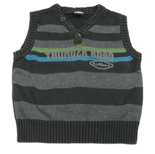 Tmavošedo-zelená pruhovaná pletená vesta s nápisem S. Oliver