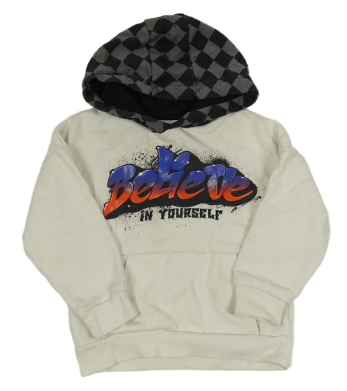 Smetanovo-kostkovaná mikina s graffiti nápisem a kapucí Primark