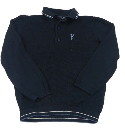 Tmavomodrý žebrovaný svetr s výšivkou a pruhy a límečkem Next