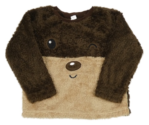 Čokoládovo-béžová chlupatá mikina s medvědem Shein
