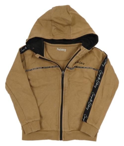 Hnědá propínací mikina s nápisem a kapucí Nutmeg