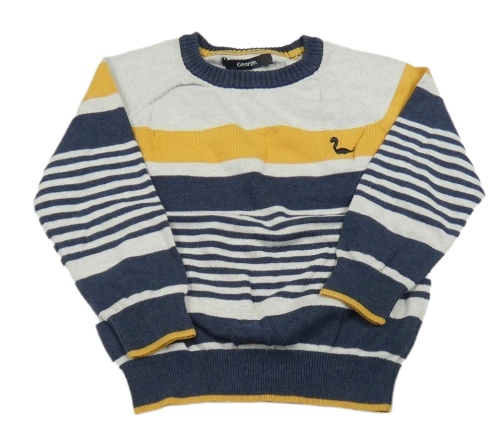 Šedo-tmavomodro-hořčicový pruhovaný svetr s dinem George