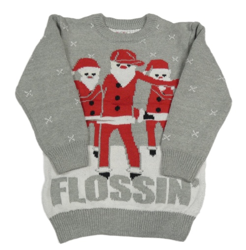Šedý svetr se Santou a nápisem