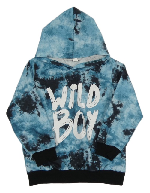 Černo-petrolejová batikovaná mikina s nápisem a kapucí