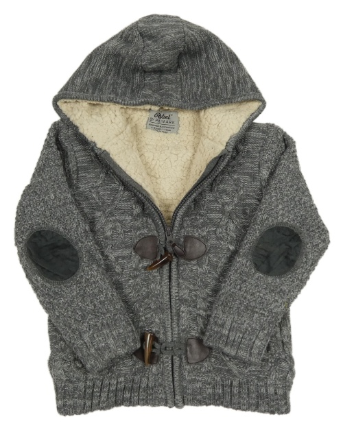 Šedý melírovaný propínací zateplený svetr s kapucí Rebel