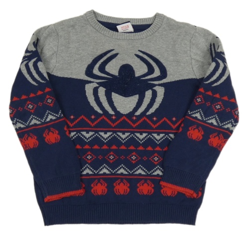 Šedo-tmavomodrý svetr s pavoukem a vzorem - Spiderman George