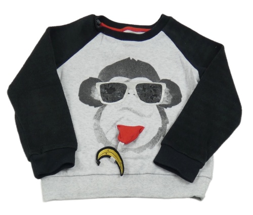 Šedo-černá mikina s opicí a plyšovými rukávy F&F