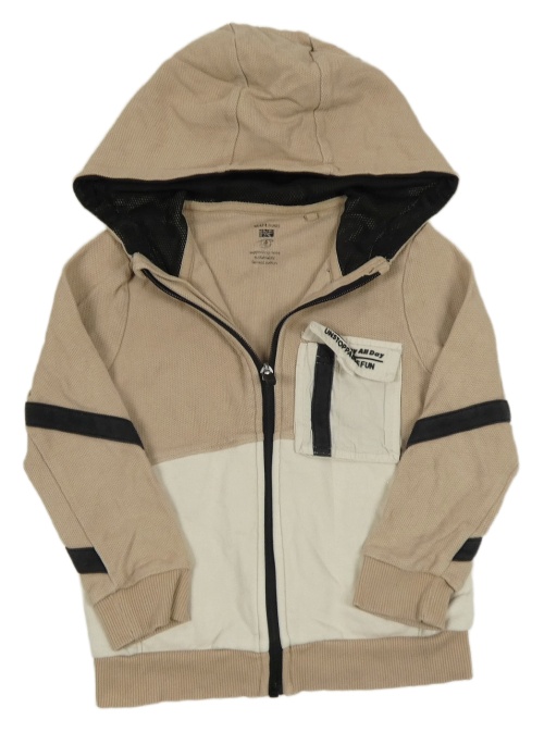 Pískovo-béžová propínací mikina s kapsou s nápisem a kapucí F&F