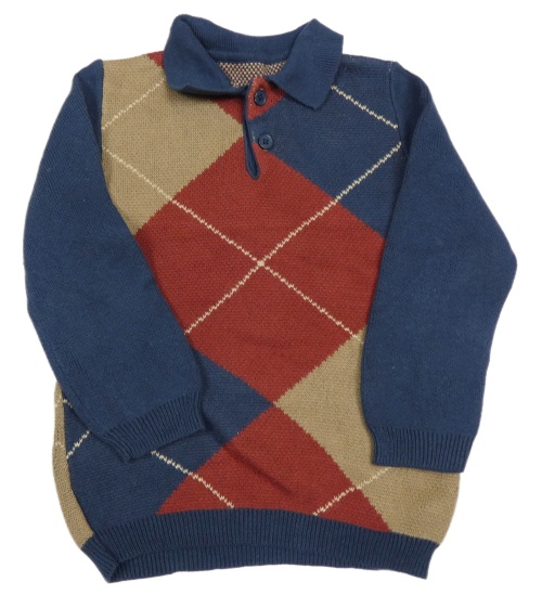 Tmavomodro-béžovo-červený károvaný svetr s límečkem Nutmeg