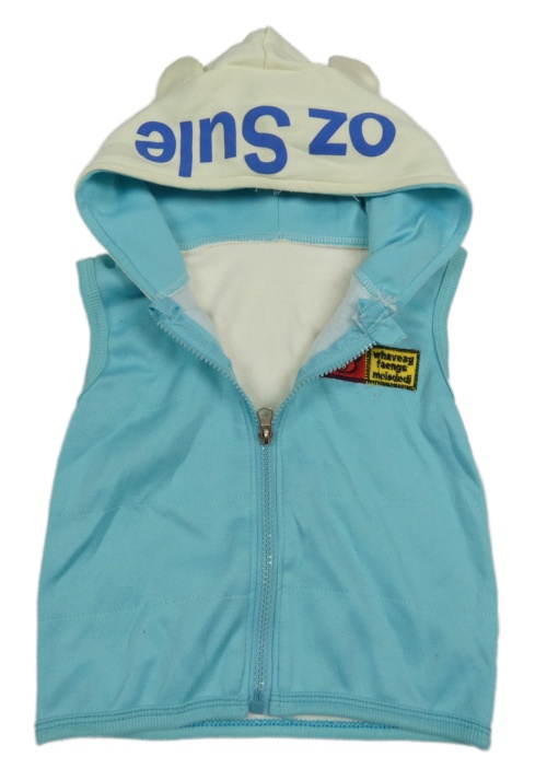 Tyrkysovo-bílá tepláková vesta s medvídkem a kapucí