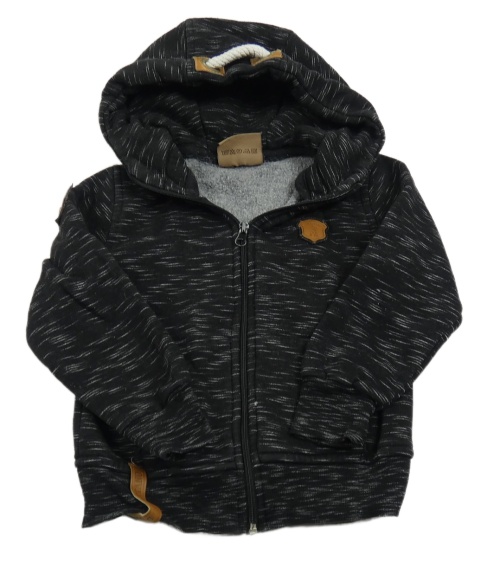 Černá melírovaná propínací teplá mikina s nášivkou a kapucí