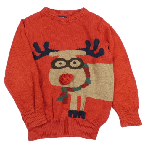 Červený svetr se sobem s bambulí Next
