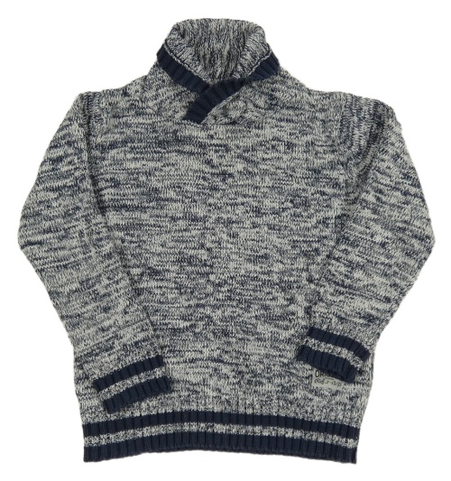 Tmavomodro-bílý melírovaný svetr s límečkem