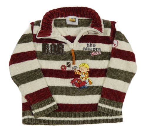 Bílo-vínovo-khaki pruhovaný žinylkový svetr s Bořkem