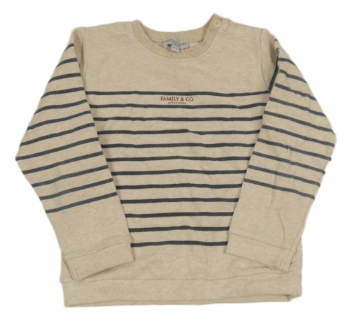 Béžovo-tmavomodrá mikina s pruhy a nápisem