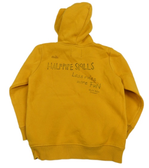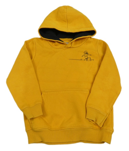 Hořčicová mikina se skateboardistou a kapsou a kapucí STC