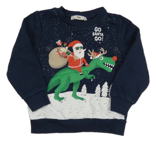 Tmavomodro-bílá vánoční mikina se Santou a dinosaurem C&A