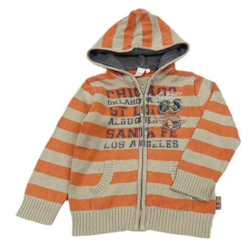 Béžovo-oranžový pruhovaný propínací svetr s nášivkami a kapucí - Tygr C&A