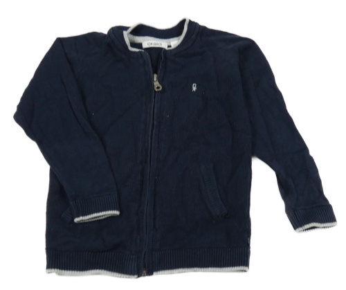 Tmavomodrý propínací svetr s výšivkou Okaidi
