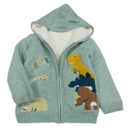 Světlemodrý propínací zateplený svetr s dinosaury a kapucí Nutmeg