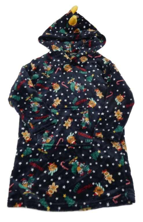 Tmavomodrá plyšová oversize mikina s vánočními obrázky a kapucí
