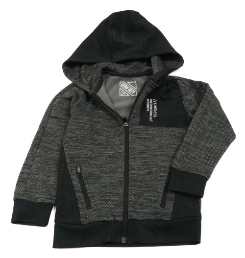 Černo-šedá melírovaná propínací mikina s nápisem a kapucí Matalan