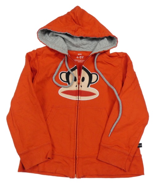 Červená propínací mikina s opicí a kapucí Paul Frank