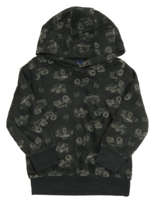 Černošedá fleecová mikina s monster trucky a kapucí Kiki&Koko
