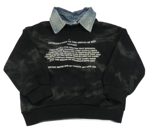 Černá batikovaná mikina s nápisem a riflovým límečkem